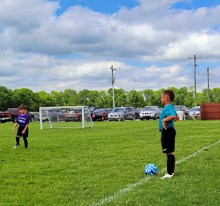 AJ had two soccer games this weekend. Saturday was hot, Sunday was nice outside. After his game Saturday Ali, AJ and I went to get Wren a gift and attend her birthday party. Wren is a good friend of Ali's daughter. Aj had a great time, ate pizza and played at the playground.